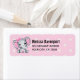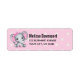 Étiquettes de adresse à l'aquarelle d'éléphant rose mignon. Elle a de jolies oreilles de pois roses et blancs et un joli ruban rose au-dessus de sa tête. L'Arrière - plan est rose clair avec des pois crème.