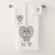 Bath towel set, consisting of a face cloth, hand towel and bath towel with an elephant design. You can customise this bath towel set with any text of your choice. Should you require any help with customising then contact us through the message link on this page. Elephant design bathroom towel set