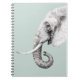 Elephant Drawing Grey Green Background Notebook