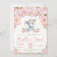 Eléphant Floral Baby shower Invitation fille