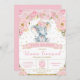Eléphant Floral Baby shower Invitation fille