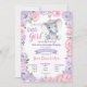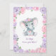 A Sweet Little Girl is on her way! Personalized Double-sided Purple and Pink Roses and Grey Elephant/Peanut Baby Shower Invitation to celebrate the arrival of new baby girl!