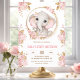 Elephant Girl Pink Floral 1st Birthday Invitation