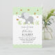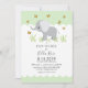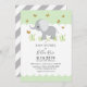 Charming modern baby shower invitation features grey baby elephant and butterflies. White stripes pattern on the back adds extra touch.