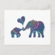 Elephant Hugs Rainbow Mom and Baby with Heart Postcard