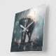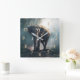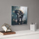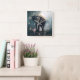 This acrylic wall clock features a photograph of sunlight shining down on an elephant in the jungle.