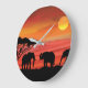 Elephant in the Serengeti Sunset Large Clock