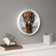 This wall clock presents an awe-inspiring elephant, blended with the distinctive fur of a tiger. The imposing elephant stands tall on the dry savannah, its usual gray hide transformed into a furred canvas of vibrant orange and bold black stripes. This magnificent elephant, with its penetrating orange gaze, appears as a mythical embodiment of strength and grandeur in the wild of Africa. Add a touch of the extraordinary to your space with this captivating elephant wall clock. generativecontent