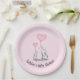 Elephant Love Pink Heart Balloons Design Paper Plate with customizable text and your choice of background colour.
