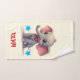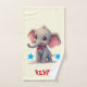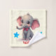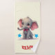 Un adorable petit éléphant portant un arc rouge se dresse entre deux étoiles bleues sur cette serviette de bain pour bébé ou bébé.