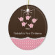 Baby's First Christmas Ornament features the sweetest blue elephant mobile set on a brown & fuchsia pink background. The back of the ornament is ready for you to add your baby's birth information. Personalize with your baby information and date and you're all set to go! Wonderful dated keepsake gift for your baby's 1st christmas. ©Cocoa Studio