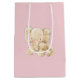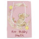 Cute elephant sitting on a crescent moon with gold stars, flowers, and glitter for baby.