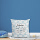 Elephant Pattern Birth Announcement Stats Blue Throw Pillow