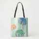 Elephant Pattern On Green Stripes Tote Bag