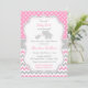 Elephant Pink and Grey Baby Shower Invitation