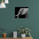 Photographie isolée d'un éléphant africain en noir et blanc sur un arrière - plan noir.