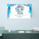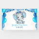 Bannière super mignonne de baby shower/anniversaire avec Watercolor Baby Boy Elephant avec une couronne bleue royale d'argent - avec parties scintillant bleue et ballons pour un petit Prince!
