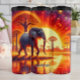 Elephant Silhouetted Against Fiery Sunset Thermal Tumbler