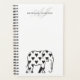 Black and white, elephant silhouette with cute heart patterns in combination with custom monogram name at the top. Simple, minimalist, monogrammed planner.