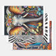 This wrapping paper set features three distinct designs, each showcasing an elegant elephant motif. The first sheet presents a floral elephant, adorned with vibrant and intricate floral patterns. The second features traditional Indian decorations, adding a touch of cultural richness. The third sheet offers a modern twist with a black-and-white elephant design set against a striped background. Ideal for gift wrapping, decoupage, or any creative project, this versatile set combines beauty and functionality, making it perfect for a variety of occasions and decorative needs.