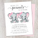 Elephant Twin Baby Girls Shower Budget Invitation