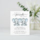 A cute and budget-friendly twin boys baby sprinkle invitation with "Two Sweet Little Peanuts Are On Their Way" in soft grey modern typography and a stylish script with swashes and two pastel blue watercolors of baby elephants. Personalize the mother-to-be's name and shower details in simple grey typography.