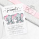 A cute and budget-friendly virtual twin baby girls shower invitation with "Two Sweet Little Peanuts Are On Their Way" written in a mixture of soft grey modern typography and stylish script, and two pastel pink watercolors of baby elephants. Personalize the mother-to-be's name and virtual shower details in simple grey typography.