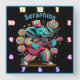 An elephant dressed in vibrant attire rocks out with a bright guitar, surrounded by whimsical swirls of candy. A joyful celebration of music and colour unfolds in this playful moment.