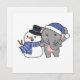 Elephant With Snowman In Winter For Christmas Holiday Card