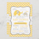 Cute elephant baby shower invitation in modern yellow and grey. The stylish design features a sweet mother and baby elephant pair, chevron pattern and polka dots. Perfect invite for a gender neutral baby shower.