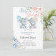 Elephants gender reveal invite, pink blue flowers. invitation