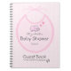 "Livre d'invité de baby shower" chic moderne. Bavoir rose mignon de bébé, avec la maman et les éléphants de bébé. Le blanc avec le rose a pointillé des empreintes de pas d'arrière - plan et de bébé. Ce "Guestbook de baby shower" sera un souvenir aimé pour le maman-à-être. Laissez vos invités écrire quelque chose spéciale dans ce livre adorable d'invité de baby shower, carnet. Maintenez les cadeaux de douche ! Personnalisez pour adapter à vos besoins. Perfectionnez pour une maman, qui attend une fille et a un chic ou un éléphant moderne orienté, baby shower. Pour voir les produits assortis, comme des invitations et des autocollants ou d'autres couleurs-Svp visitez mon magasin "la princesse de Hungarican" chez www.zazzle.com/hungaricanprincess*. Regardez dans mon "oh département de catégorie de bébé". Félicitations !.