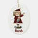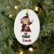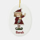 Cute Christmas ornament, with country primitive artwork of a little girl elf holding a dolly. Personalize front and back with your child's name. Adorable ornament she'll treasure for years.