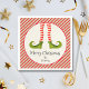 Fun elf legs wearing red and ivory striped tights and green boots with jingle bells and any wording in chic lettering, these holiday paper napkins. MATCHING items in our collection.