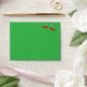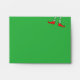 This green envelope has a simple, funny design with elf legs wearing green & white striped tights and red elf shoes, with tiny jingle bells on the front and a bright, fun, festive, red and white peppermint candy swirl on the inside.