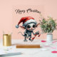 Un elfe de Noël avec Sucre de canne. Donnez vie à la magie des vacances grâce à cette oeuvre de Noël unique : un elfe fantaisiste à la peau grise portant un chapeau de Père Noël rouge et blanc classique. Avec de grands yeux expressifs, il tient un personnel de sucre de canne rayé contre un paysage hivernal enneigé rempli d'arbres à feuillage persistant. Ce design festif et magique reflète l'esprit joyeux de Noël.