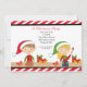 C'est une invitation adorable de fête de Noël. Elle a un arrière - plan rayé rouge et blanc. Il y a alors une frontière mince noire avec un centre blanc. Il y a cet elfe mignon de fille tenant un pinceau fonctionnant à une table avec un elfe adorable de garçon. Les elfes sont habillés dans des casquettes de port rouges et verts de père Noël. Personnalisez avec l'information de partie au-dessus de eux. Vérifiez les nombreux autres conceptions et produits que nous avons dans des invitations de Noël. Illustrations du © JW