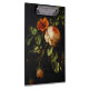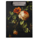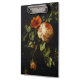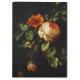 Vintage Still Life with Roses by Elias van den Broeck on Black. This old masterpiece oil on canvas painting shows red roses a butterfly and a snail.