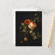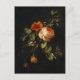 Vintage Still Life with Roses by Elias van den Broeck on Black Postcard. This old masterpiece oil on canvas painting shows red roses a butterfly and a snail.