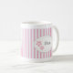 These generously sized white china mugs are decorated with lovely and delicate stripes.