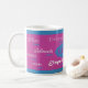 This mug features the name Elizabeth in 13 languages including: English, Spanish, French, Serbian, Polish, Czech, Scottish, Hebrew, German, Irish, Italian, Russian, and Polish.