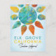 Bright, colourful Elk Grove California design that is 100% Sunshine approved. Warm colours of red, orange, turquoise and aqua in a watercolor style pattern on a pretty blue shaded background.