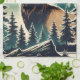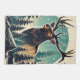 Stylized depiction of an elk with antlers amidst pine trees under starry backdrop, exuding wilderness charm.