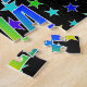 This exciting, fun, birthday-themed jigsaw puzzle design features the message "HAPPY BIRTHDAY, ELLA" with the characters having a colourful rainbow spectrum inspired gradient pattern, along with a vibrant field of stars background pattern. A vibrant puzzle like this might be a fun way to send birthday wishes to somebody named Ella. [~Z0000468]