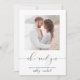 Notre invitation de fiançailles à succès reçoit une mise à jour moderne! Notre Invitation de la partie Engagement Elle a dit Oui Calligraphie présente votre photo de fiançailles carré avec une calligraphie à la main disant "elle a dit oui", suivi de vos noms et annonçant votre partie fiançale, dans une combinaison de polices blanches sans serif et de polices manuscrites de script de calligraphie. Le dos de la carte est muni d'un arrière - plan d'aquarelle noir et blanc avec la date de la fête, l'emplacement et les détails de la RSVP - une belle invitation de fiançailles moderne! Copyright Anastasia Surridge Designs, tous droits réservés.