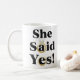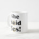 Célébrez ce moment inoubliable avec cette magnifique tasse de fiançailles "Elle a dit oui !". Avec sa typographie élégante et son anneau de diamants scintillant, cette tasse est le moyen idéal pour commémorer le début de votre voyage vers "oui, je le veux". C'est un merveilleux souvenir pour le couple nouvellement fiancé ou le cadeau parfait pour la future mariée.