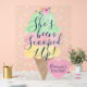 Elle A Été Prise En Main Panneau de Bienvenue en Acrylique pour Mariage est l'ajout parfait à toute fête de mariage ou fiançailles ! Avec un magnifique cône de glace aquarelle en vert menthe clair, rose et jaune avec des paillettes pastel assorties dans des couleurs coordonnées ! De nombreuses options de taille disponibles. Personnalisez avec le nom de la future mariée.