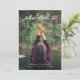 Cet amusement, invitation à la mode de fête de remise des diplômes comporte la photo du diplômé sur l'avant, avec les mots "qu'elle l'a fait !" dans la typographie moderne et blanche. Personnalisez l'avant avec son nom, année de diplômé, et nom d'école. Le dos contient toute les information de partie.