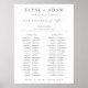 This seating chart poster features a modern minimalist design and 2 long banquet tables and a bridal table layout. The script text heading is an image that cannot be edited. The heading image can be resized to fit any poster size. All of the other text is fully editable. For more advanced customization of this design, simply select the "Customize It" button above.