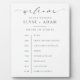This order of events welcome sign poster features a modern minimalist design. The script text heading is an image that cannot be edited. The heading image can be resized to fit any poster size. All of the other text is fully editable. For more advanced customization of this design, simply select the "Customize It" button above.